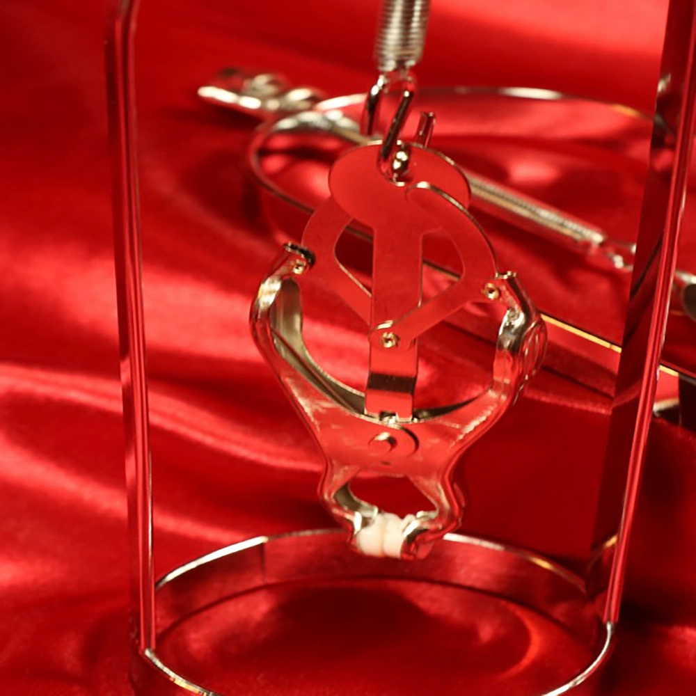 Chambers of Love -valikoiman japanilaiset nännipuristimet jalustalla pitävät nännit tukevasti paikallaan, jotta voit jatkaa sessiota ilman jatkuvaa säätämistä. Kiristä jalustan yläosassa olevaa ruuvia, jolloin puristimet vedetään ylöspäin ja paine kasvaa hallitusti nännejä vasten. Tower of Pain Chambers of Love -mallistosta toimitetaan parina erillisiä puristimia, joten voit hienosäätää tuntemusta puoli kerrallaan ja löytää juuri oikean tason sinulle tai partnerillesi. Jalusta pitää puristimet vakaasti paikoillaan ja auttaa intensiteetin pysymään tasaisena myös liikkeessä – näin saat koko session ajan tasaisen ja selkeän pain-play-tuntuman. Säädä kevyestä, aistillisesta paineesta voimakkaampaan otteeseen – aina tarkasti ja hallitusti. Sopii sekä aloittelijoille, jotka haluavat tutkia turvallisesti, että kokeneille, jotka etsivät tehokasta välinettä kohdennettuun stimulointiin ja kipuun omassa BDSM Dungeonissasi.